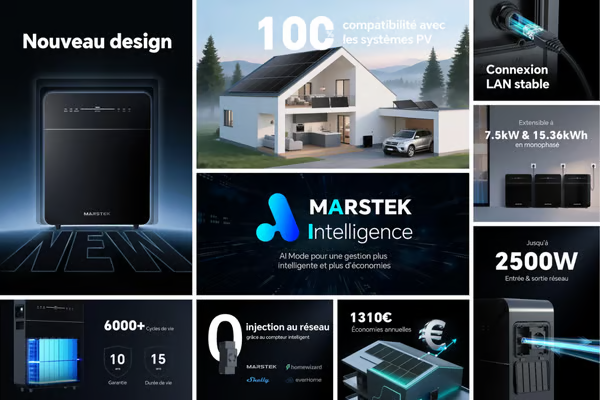 Continuer vos achatsStockez et gérez votre énergie solaire facilement avec un simple branchement à une prise standard. Idéale pour les particuliers souhaitant réduire leur facture d’électricité en maximisant l’autoconsommation solaire et en ajustant la charge de leur batterie pour profiter des tarifs électriques les plus avantageux.