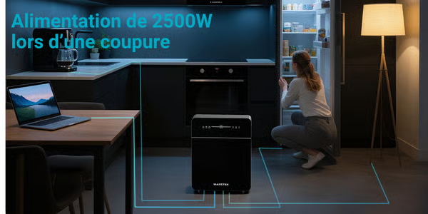 Ne craignez plus les coupures de courant : la batterie Marstek Venus E bascule automatiquement en alimentation autonome sans aucun temps de latence. Elle assure jusqu’à 2500 W de puissance continue hors réseau, ce qui permet de maintenir en fonctionnement vos équipements essentiels : réfrigératuer, congélateur, box internet, éclairage, ...