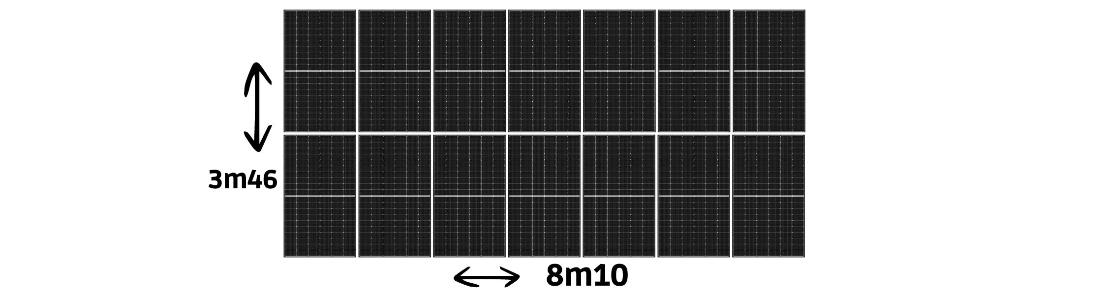 - Puissance totale de 5740 Wc (410 Wc par panneau)